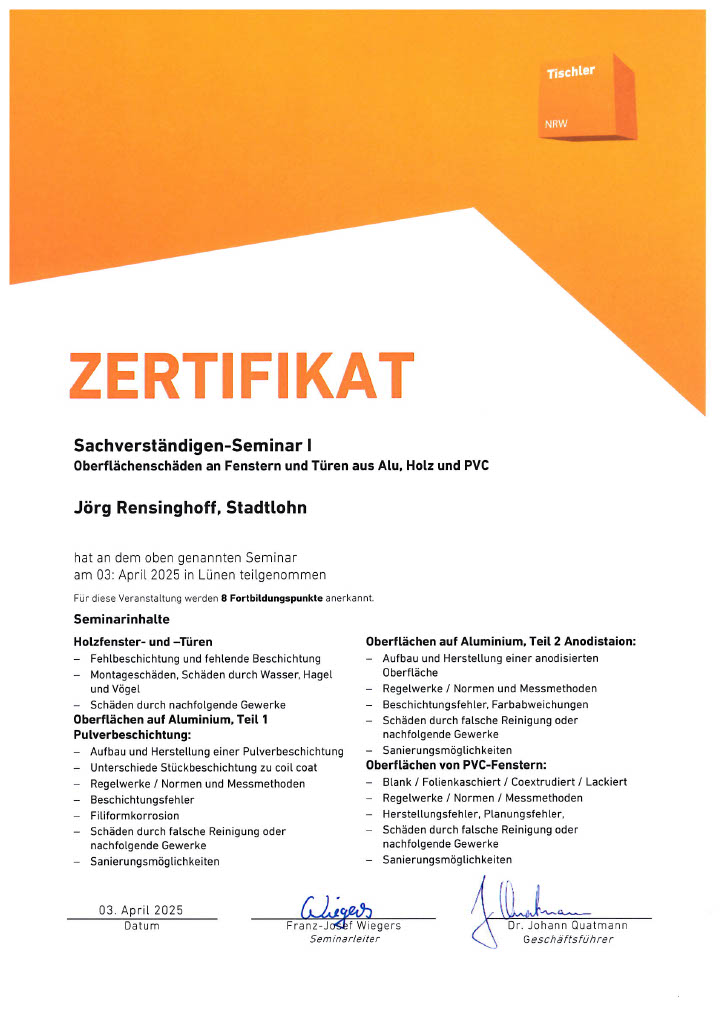 Als Gutachter für Fenster und Türen, Sachverständiger für das Glaserhandwerk und als Sachverständiger für das Tischlerhandwerk müssen bestimmte Qualifikation erfüllt werden.